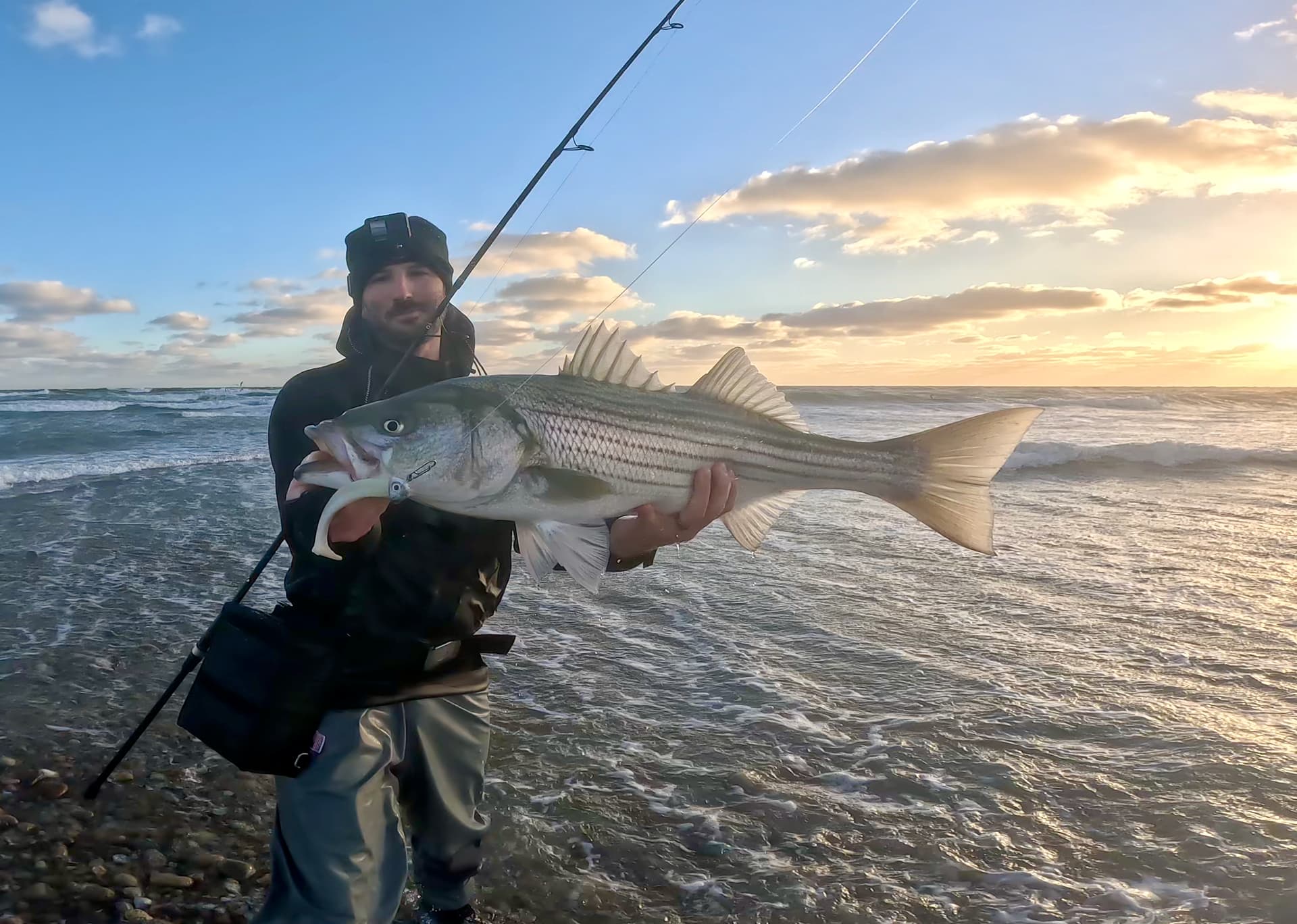 Ryan's perseverance led him to epic action, landing striper after striper during this great fall run. Ryan used a white Paddle Tail from Monomoy Tackle to catch stripers on cast after cast, the perfect lure to work in the wash where the stripers were gorging themselves on baitfish.