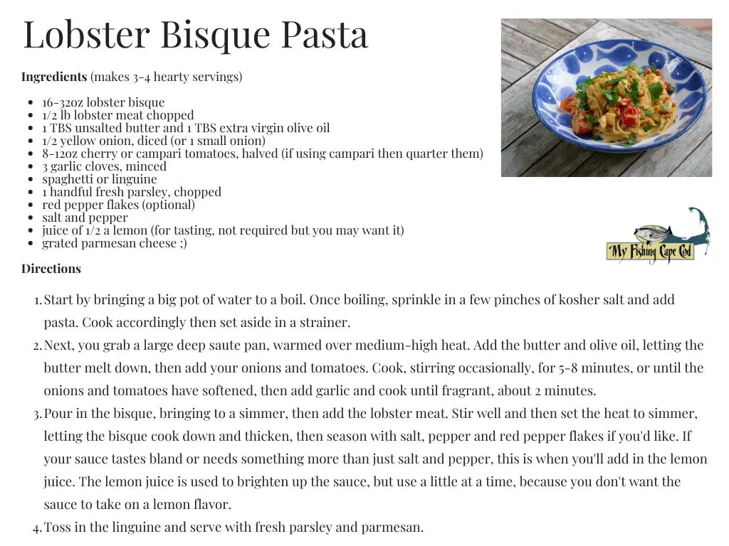 If you're not on Cape or in the New England area, your best bets which may surprise you are from Costco or Trader Joes. My Mom get's our Christmas Eve bisque from Costco and adds more lobster to it and a fresh drizzle of sherry, but of course for this recipe you don't need to do that, the bisque itself is perfect. Trader Joe's also makes a great lobster bisque.