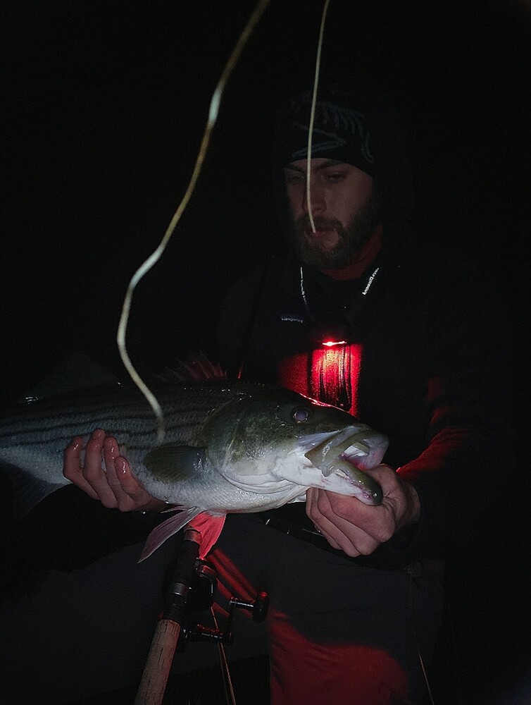 In the MFCC Surfcasters Thread - Fall 2025, Calvin Toran-Sandlin continues chasing stripers, having recent success on November 11th, landing a healthy bass in the pitch dark.