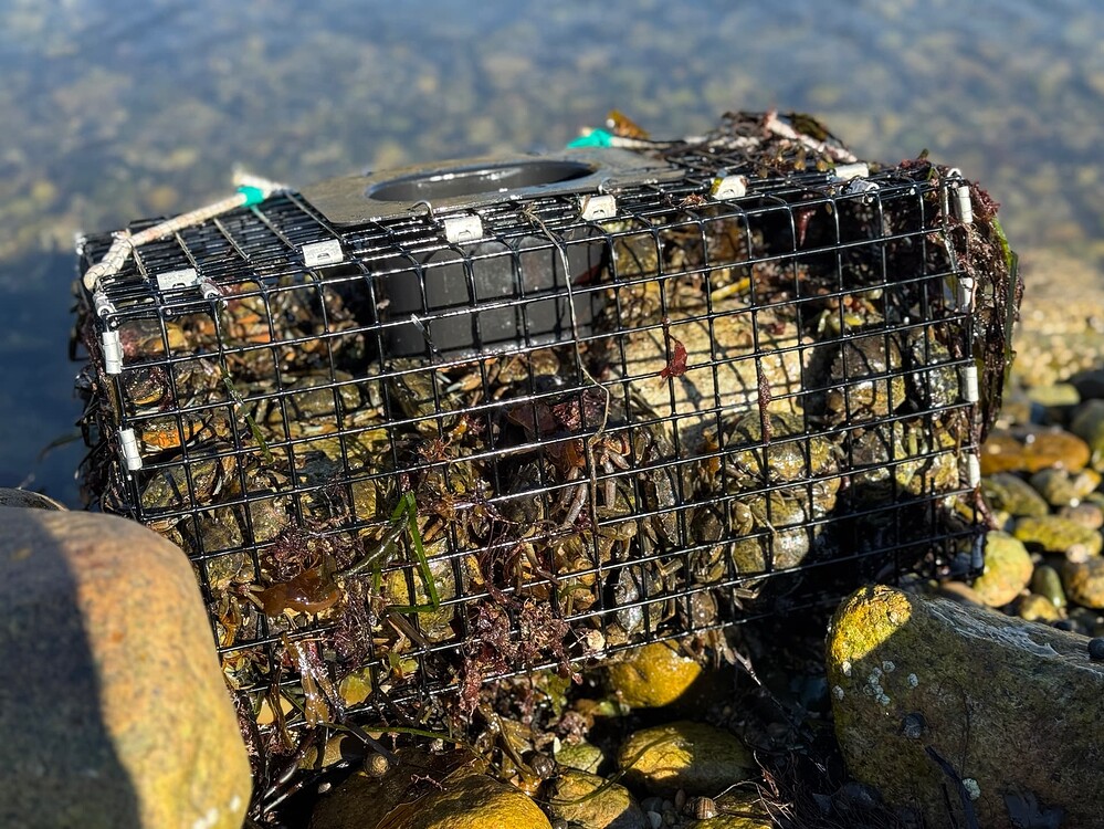 With a trap full of green crabs after a short time in the water, Ryan Collins is ready to target tautog.