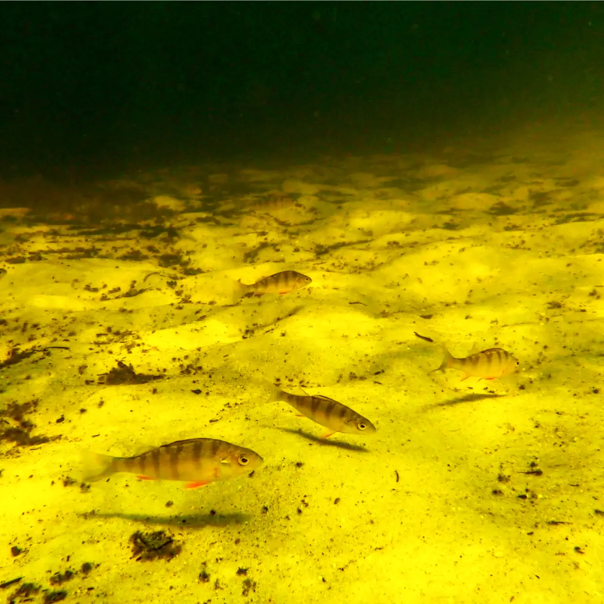 As their name suggests, yellow perch are quite colorful, with a pattern of 6-8 dark vertical bars over a background color of yellow or yellowish-green.